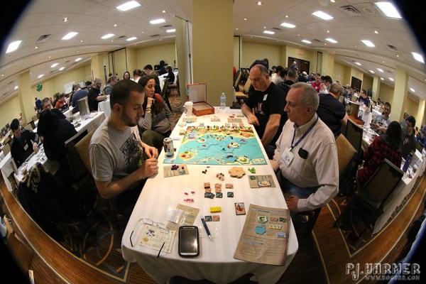 Earlier this month, I went to a game convention in Connecticut. I played a five-player game in one slot, and this is a shot with the other four. I liked out it came out.