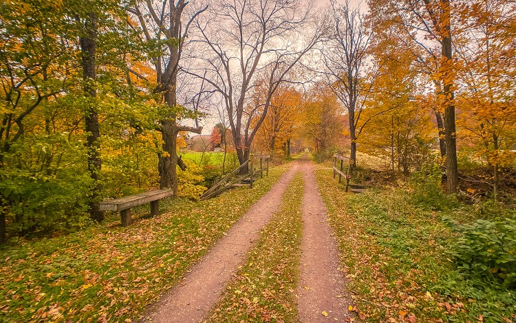 One thing about being slow to visit everyone else’s blog posts is that it really underscores how quickly time marches on – despite the fact that it feels like 2020 is lasting forever!! Fall colours disappeared from our part of the world by late September/very early October, basically when we got our first accumulation of snow for the year. That top photo, with the two dirt tracks heading between the trees is a stunner – worthy of desktop wallpaper or a Thanksgiving card to a pen pal.